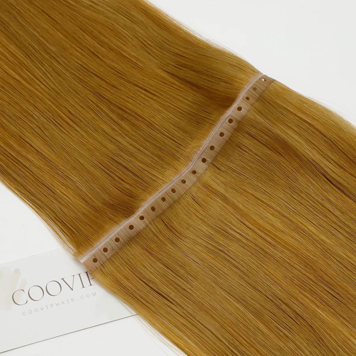 A: A Butterfly Weft is a revolutionary new type of hair extension. It features an ultra-thin PU base with pre-made holes. Instead of sewing, taping, or gluing, you pull your natural hair through the holes and secure them with micro-beads. The weft then "folds" over like butterfly wings to completely hide the beads.